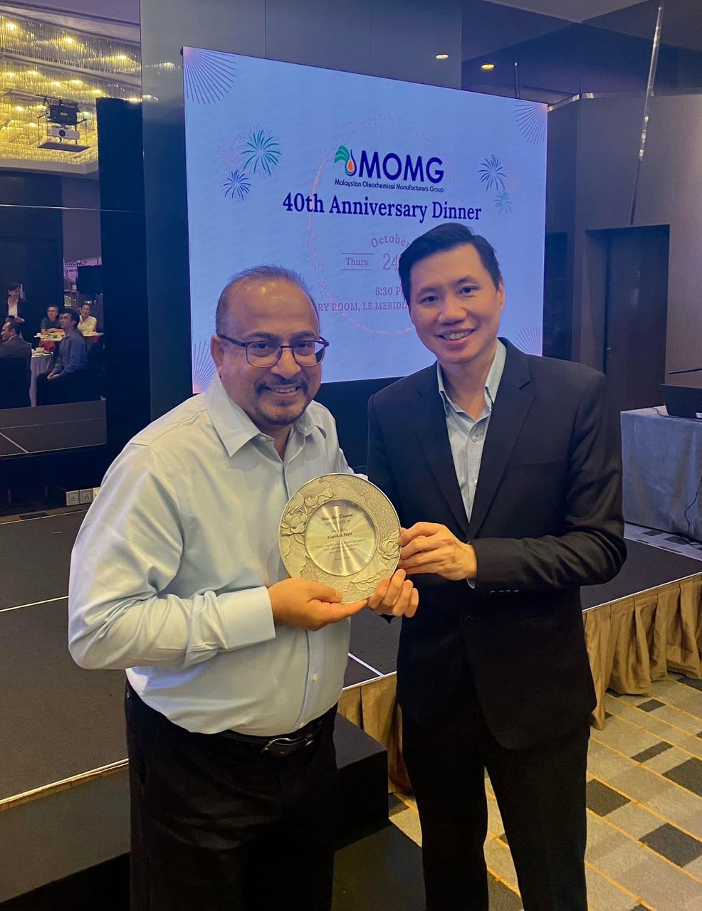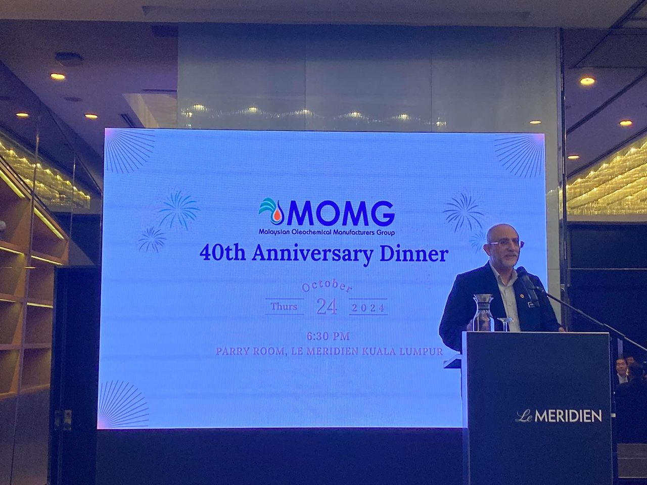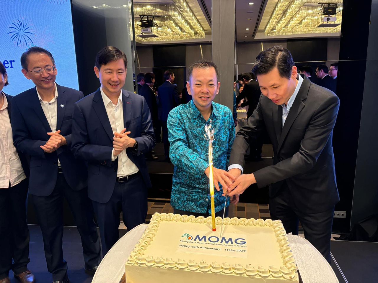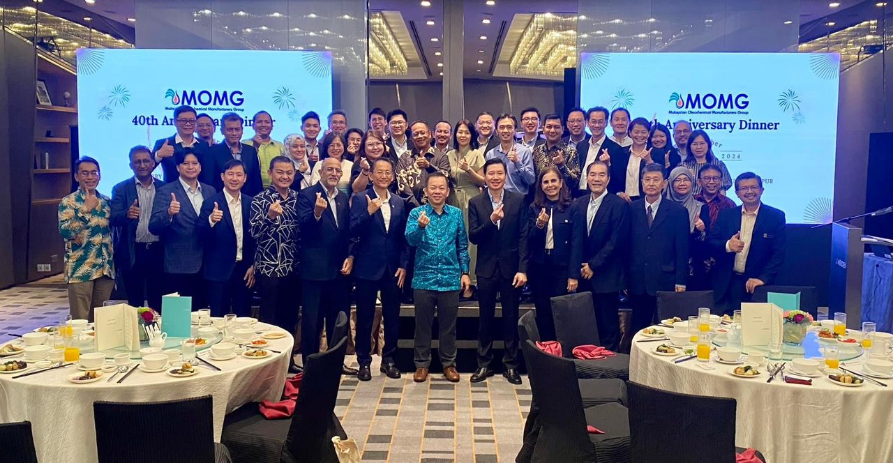 MOMG celebrated its 40th anniversary with a dinner on October 24, 2024 at the Le Meridien Kuala Lumpur. We were honored to host YB Datuk Chan Foong Hin, Deputy Minister of Plantation and Commodities along with senior representatives from the Government - KPK, MPOB, MPOC, MSPO, MITI & MIDA, our friends from the palm oil industry - MPOA, MEOA and PORAM as well as MOMG members at the celebration. MOMG was established when 5 companies involved in the production of basic oleochemicals, known as the “M5” came together in 1984 and established the Group to promote the interest of the oleochemical industry. The founding members were Acidchem, Henkel Oleochemicals Malaysia, Malaysian Oleochemical Industry, Unichema Malaysia and Southern Acids.